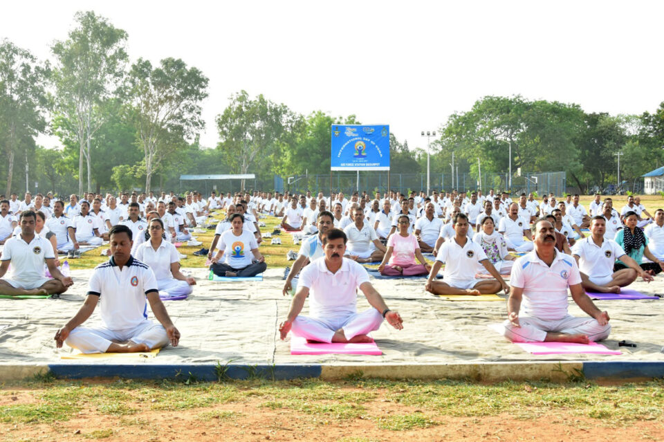 More than 1375 (500 from AFA, 100 from CAW, 500 from AFS Hakimpet, 275 from AFS Begumpet) Indian Air Force personnel and their families enthusiastically participated in the “International Day of Yoga” to mark the event as a day to rejuvenate their physical and mental prowess. Air Marshal B Chandra Sekhar, Commandant, AFA, Air Vice Marshal Manish Khanna, Commandant, CAW, Group Captain Jaswant Patel, AFS Hakimpet and Group Captain Manish Kumar, Station Commander, AFS Begumpet along with other senior functionaries joined the session. The event covered basic ‘Kriyas’, followed by some ‘Asanas’, ‘Pranayama’ and culminated with ‘Sankalpa’ & prayer.