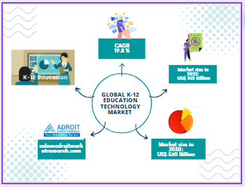 According to Adroit Market Research, the market for K-12 education technology will grow at an impressive CAGR of 19.8 %, from its estimated value of US$105 billion in 2022 to US$ 350 billion by 2030.