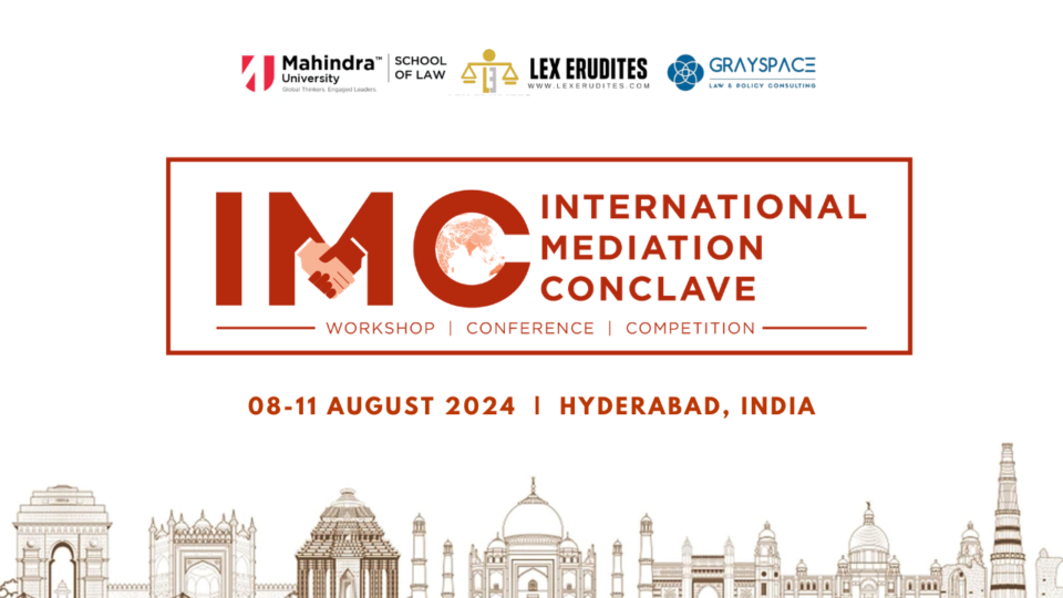 Mahindra University will host the International Mediation Conclave (IMC) 2024 from August 8th to 11th, 2024, on its campus. This event is the first international conclave dedicated exclusively to mediation. The program includes workshops, a conference, a mediation competition, and an International Mediation Essay Competition.