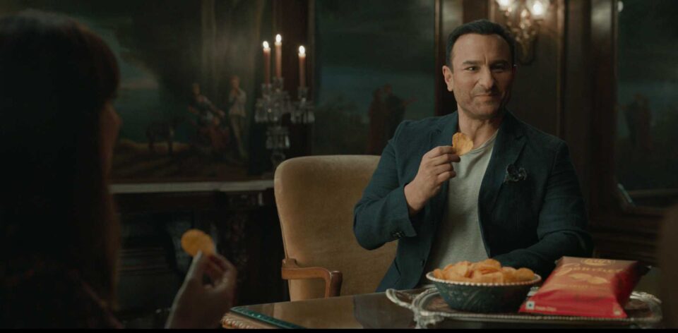 The TV commercial, artfully directed by Vivek Kakkad, begins with Saif walking through a luxuriously decorated corridor to meet journalists Aditi and Anjali, who are waiting to interview him. The grandeur of Saif’s home leaves the journalists awestruck. They discuss the possibility of the house having multiple chandeliers in each room, a legion of butlers at his service, and even a lion as his companion. Oddly enough the things that they imagine suddenly start emerging around Saif, leaving him confused. Aditi intervenes, reminding Anjali that Saif’s exquisite taste should not be judged solely by his opulence. Intrigued, Anjali wants to learn more about his extraordinary taste, and at that moment, he surprises them by placing packs of Lay’s Gourmet on the table, giving them a glimpse of his fine taste. Anjali, excitedly exclaims, “Chips! Oh, I love chips.” But Aditi corrects her, saying, “These are not chips, Anjali. They are Lay’s Gourmet.”
